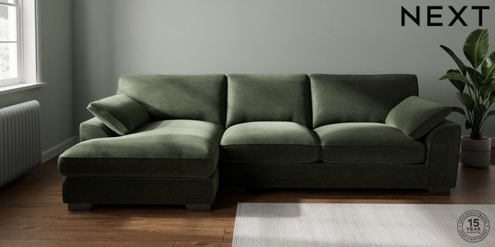 7.3.1 Buy Stamford Grand Relaxed Sit Large Sofa Chaise - Left Hand Luxe Chenille Mid Green Large Square Angle - Gunmetal from the Seasons online shop Click here to use our website with more accessibility support, for example screen readers