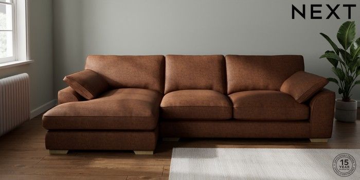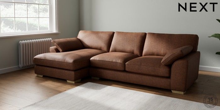 7.3.1 Buy Stamford Grand Relaxed Sit Large Sofa Chaise - Left Hand Monza Faux Leather Easy Clean Chestnut Brown Large Square Angle - Light from the Seasons online shop Click here to use our website with more accessibility support, for example screen readers