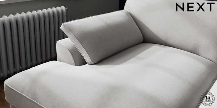 7.3.1 Buy Stamford Grand Relaxed Sit Large Sofa Chaise - Left Hand Natural Mix Light Grey Large Square Angle - Chrome Metal from the Seasons online shop Click here to use our website with more accessibility support, for example screen readers
