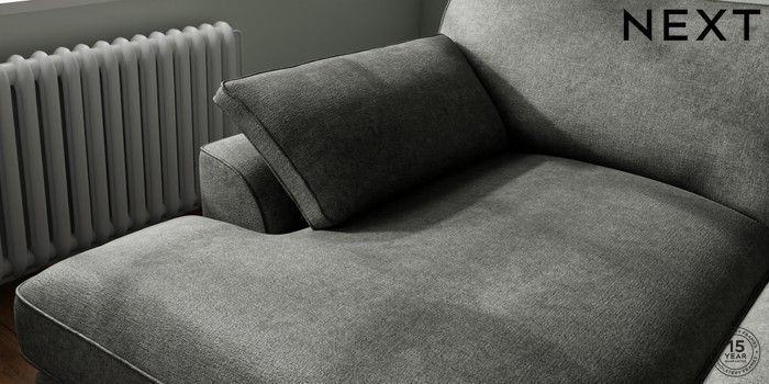 7.3.1 Buy Stamford Grand Relaxed Sit Large Sofa Chaise - Left Hand Plush Chenille Dark Grey Large Square Angle - Brushed Brass from the Seasons online shop Click here to use our website with more accessibility support, for example screen readers