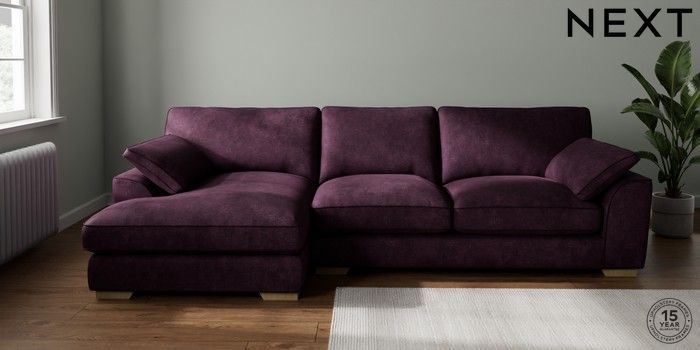 7.3.1 Buy Stamford Grand Relaxed Sit Large Sofa Chaise - Left Hand Plush Chenille Dark Plum Purple Large Square Angle - Light from the Seasons online shop Click here to use our website with more accessibility support, for example screen readers
