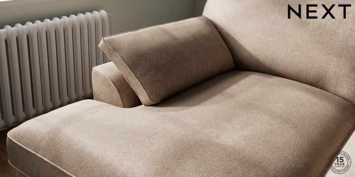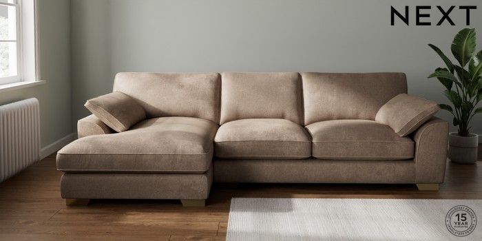 7.3.1 Buy Stamford Grand Relaxed Sit Large Sofa Chaise - Left Hand Plush Chenille Mid Natural Large Square Angle - Brushed Brass from the Seasons online shop Click here to use our website with more accessibility support, for example screen readers