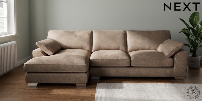 7.3.1 Buy Stamford Grand Relaxed Sit Large Sofa Chaise - Left Hand Plush Chenille Mid Natural Large Square Angle - Chrome Metal from the Seasons online shop Click here to use our website with more accessibility support, for example screen readers