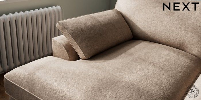 7.3.1 Buy Stamford Grand Relaxed Sit Large Sofa Chaise - Left Hand Plush Chenille Mid Natural Large Square Angle - Gunmetal from the Seasons online shop Click here to use our website with more accessibility support, for example screen readers