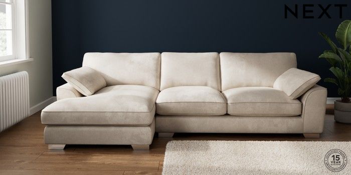 7.3.1 Buy Stamford Grand Relaxed Sit Large Sofa Chaise - Left Hand Plush Chenille Oyster Large Square Angle - Chrome Metal from the Seasons online shop Click here to use our website with more accessibility support, for example screen readers