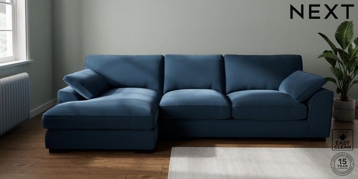 7.3.1 Buy Stamford Grand Relaxed Sit Large Sofa Chaise - Left Hand Plush Velvet Easy Clean Airforce Blue Large Square Angle - Dark from the Seasons online shop Click here to use our website with more accessibility support, for example screen readers