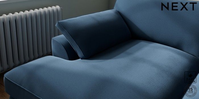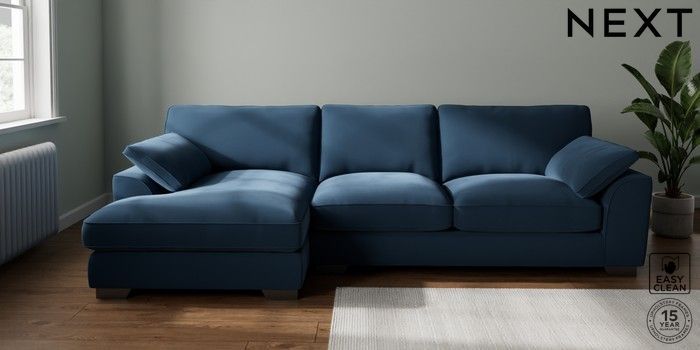 7.3.1 Buy Stamford Grand Relaxed Sit Large Sofa Chaise - Left Hand Plush Velvet Easy Clean Airforce Blue Large Square Angle - Gunmetal from the Seasons online shop