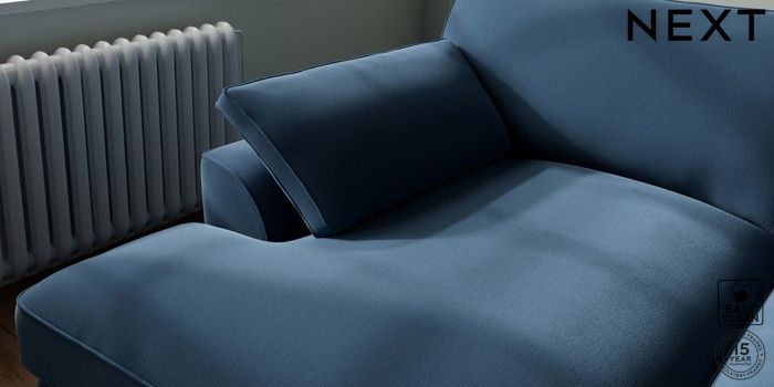 7.3.1 Buy Stamford Grand Relaxed Sit Large Sofa Chaise - Left Hand Plush Velvet Easy Clean Airforce Blue Large Square Angle - Mid from the Seasons online shop Click here to use our website with more accessibility support, for example screen readers