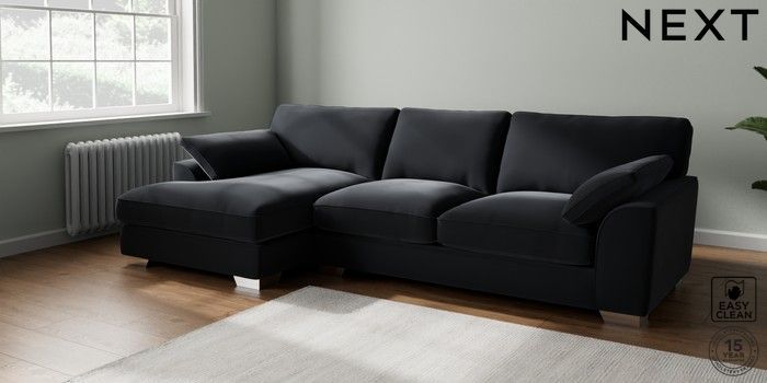 7.3.1 Buy Stamford Grand Relaxed Sit Large Sofa Chaise - Left Hand Plush Velvet Easy Clean Charcoal Grey Large Square Angle - Chrome Metal from the Seasons online shop
