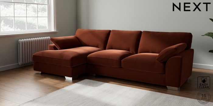 7.3.1 Buy Stamford Grand Relaxed Sit Large Sofa Chaise - Left Hand Plush Velvet Easy Clean Ginger Orange Large Square Angle - Chrome Metal from the Seasons online shop