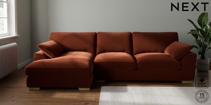 7.3.1 Buy Stamford Grand Relaxed Sit Large Sofa Chaise - Left Hand Plush Velvet Easy Clean Ginger Orange Large Square Angle - Light from the Seasons online shop Click here to use our website with more accessibility support, for example screen readers