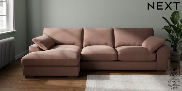 7.3.1 Buy Stamford Grand Relaxed Sit Large Sofa Chaise - Left Hand Plush Velvet Easy Clean Mid Natural Large Square Angle - Mid from the Seasons online shop Click here to use our website with more accessibility support, for example screen readers