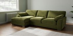 7.3.1 Buy Stamford Grand Relaxed Sit Large Sofa Chaise - Left Hand Plush Velvet Easy Clean Mid Olive Green Large Square Angle - Gunmetal from the Seasons online shop