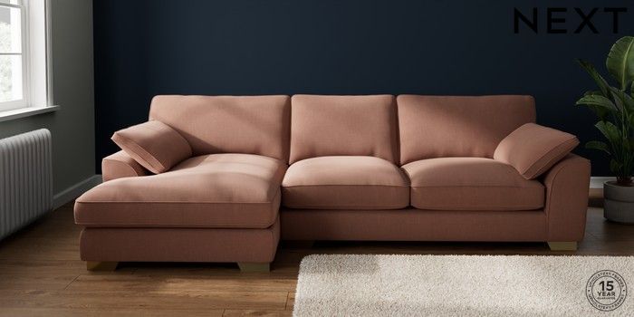 7.3.1 Buy Stamford Grand Relaxed Sit Large Sofa Chaise - Left Hand Relaxed Linen Look Light Rust Brown Large Square Angle - Brushed Brass from the Seasons online shop Click here to use our website with more accessibility support, for example screen readers