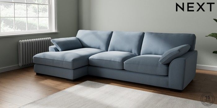 7.3.1 Buy Stamford Grand Relaxed Sit Large Sofa Chaise - Left Hand Relaxed Linen Look Mid Blue Large Square Angle - Dark from the Seasons online shop Click here to use our website with more accessibility support, for example screen readers