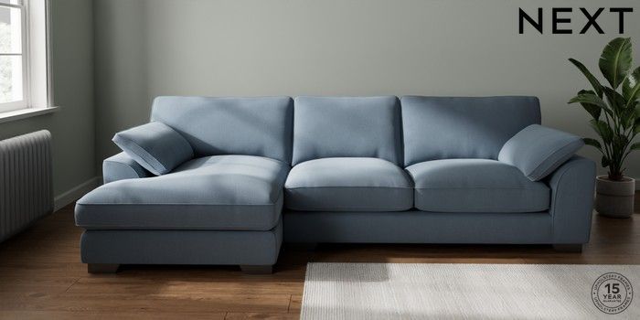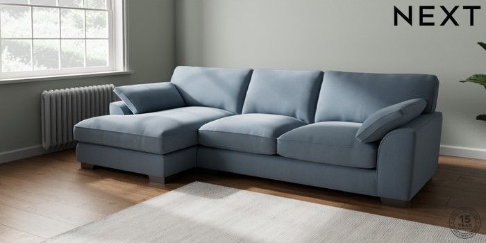 7.3.1 Buy Stamford Grand Relaxed Sit Large Sofa Chaise - Left Hand Relaxed Linen Look Mid Blue Large Square Angle - Gunmetal from the Seasons online shop Click here to use our website with more accessibility support, for example screen readers