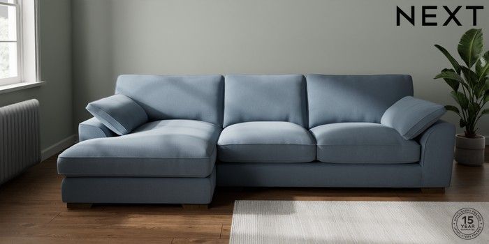 7.3.1 Buy Stamford Grand Relaxed Sit Large Sofa Chaise - Left Hand Relaxed Linen Look Mid Blue Large Square Angle - Mid from the Seasons online shop Click here to use our website with more accessibility support, for example screen readers
