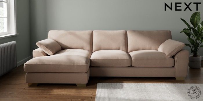 7.3.1 Buy Stamford Grand Relaxed Sit Large Sofa Chaise - Left Hand Relaxed Linen Look Mid Natural Large Square Angle - Brushed Brass from the Seasons online shop Click here to use our website with more accessibility support, for example screen readers