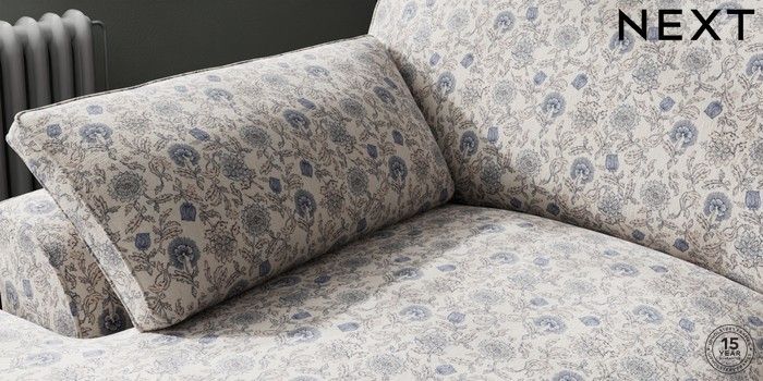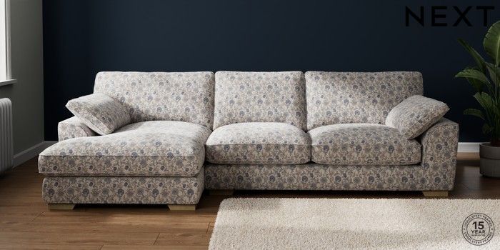 7.3.1 Buy Stamford Grand Relaxed Sit Large Sofa Chaise - Left Hand Relaxed Linen Look Print Woodblock Floral Blue Large Square Angle - Light from the Seasons online shop