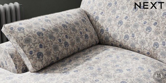 7.3.1 Buy Stamford Grand Relaxed Sit Large Sofa Chaise - Left Hand Relaxed Linen Look Print Woodblock Floral Blue Large Square Angle - Mid from the Seasons online shop