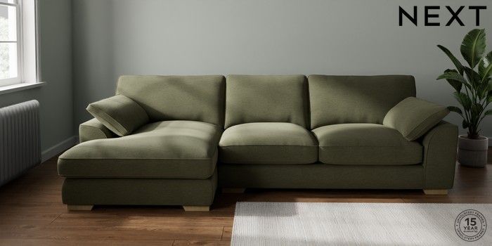 7.3.1 Buy Stamford Grand Relaxed Sit Large Sofa Chaise - Left Hand Ripple Chenille Mid Moss Green Large Square Angle - Light from the Seasons online shop Click here to use our website with more accessibility support, for example screen readers