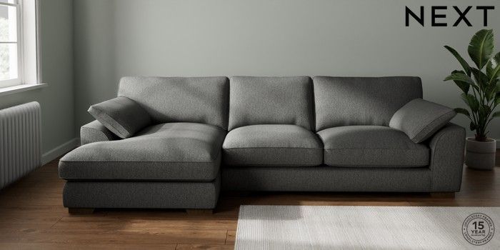 7.3.1 Buy Stamford Grand Relaxed Sit Large Sofa Chaise - Left Hand Tweedy Chenille Dark Grey Large Square Angle - Mid from the Seasons online shop Click here to use our website with more accessibility support, for example screen readers