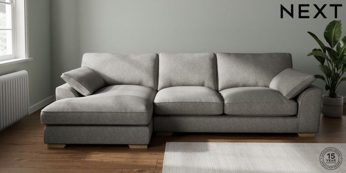 7.3.1 Buy Stamford Grand Relaxed Sit Large Sofa Chaise - Left Hand Tweedy Chenille Mid Grey Large Square Angle - Light from the Seasons online shop Click here to use our website with more accessibility support, for example screen readers