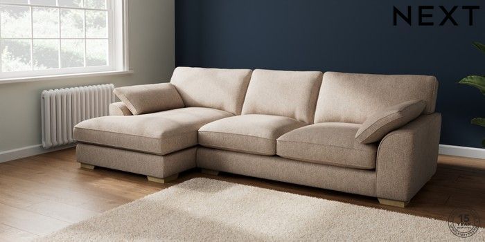 7.3.1 Buy Stamford Grand Relaxed Sit Large Sofa Chaise - Left Hand Tweedy Chenille Mid Natural Large Square Angle - Light from the Seasons online shop Click here to use our website with more accessibility support, for example screen readers