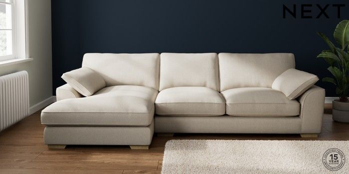 7.3.1 Buy Stamford Grand Relaxed Sit Large Sofa Chaise - Left Hand Tweedy Chenille Oyster Large Square Angle - Light from the Seasons online shop Click here to use our website with more accessibility support, for example screen readers