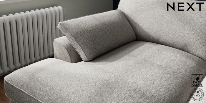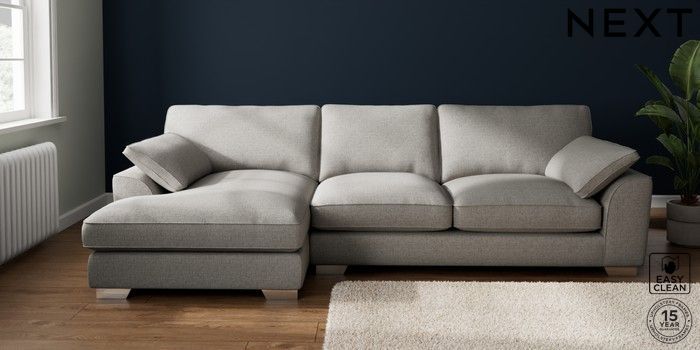 7.3.1 Buy Stamford Grand Relaxed Sit Large Sofa Chaise - Left Hand Woven Chenille Easy Clean Light Grey Large Square Angle - Chrome Metal from the Seasons online shop Click here to use our website with more accessibility support, for example screen readers