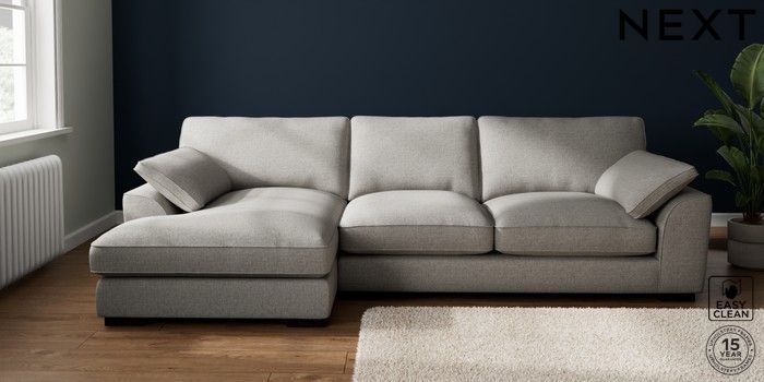 7.3.1 Buy Stamford Grand Relaxed Sit Large Sofa Chaise - Left Hand Woven Chenille Easy Clean Light Grey Large Square Angle - Dark from the Seasons online shop Click here to use our website with more accessibility support, for example screen readers