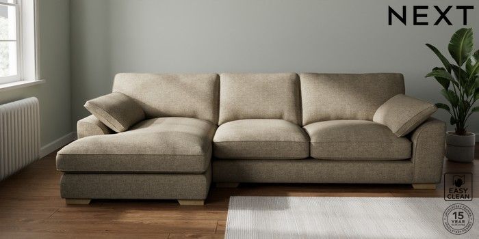 7.3.1 Buy Stamford Grand Relaxed Sit Large Sofa Chaise - Left Hand Woven Chenille Easy Clean Mid Natural Large Square Angle - Light from the Seasons online shop Click here to use our website with more accessibility support, for example screen readers