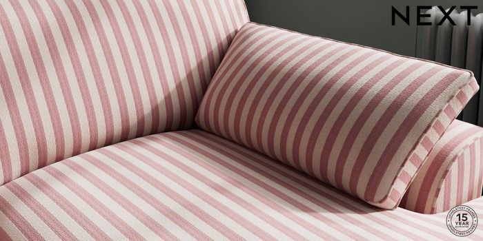 7.3.1 Buy Stamford Grand Relaxed Sit Large Sofa Chaise - Right Hand Bold Chenille Stripe Dark Pink Large Square Angle - Mid from the Seasons online shop Click here to use our website with more accessibility support, for example screen readers
