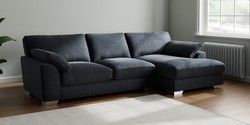 7.3.1 Buy Stamford Grand Relaxed Sit Large Sofa Chaise - Right Hand Boucle Chenille Dark Slate Blue Large Square Angle - Chrome Metal from the Seasons online shop Click here to use our website with more accessibility support, for example screen readers