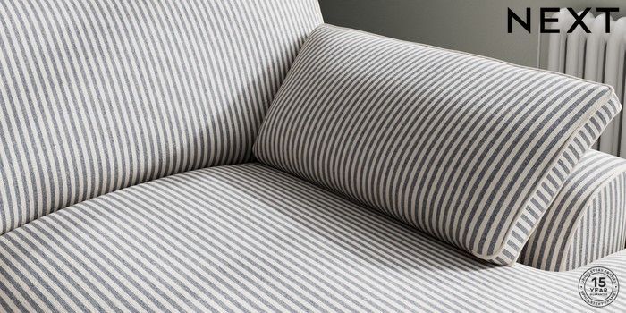 7.3.1 Buy Stamford Grand Relaxed Sit Large Sofa Chaise - Right Hand Chenille Stripe Slate Blue Large Square Angle - Gunmetal from the Seasons online shop Click here to use our website with more accessibility support, for example screen readers