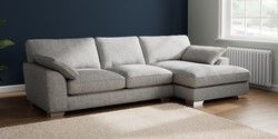 7.3.1 Buy Stamford Grand Relaxed Sit Large Sofa Chaise - Right Hand Chunky Boucle Easy Clean Light Grey Large Square Angle - Chrome Metal from the Seasons online shop Click here to use our website with more accessibility support, for example screen readers