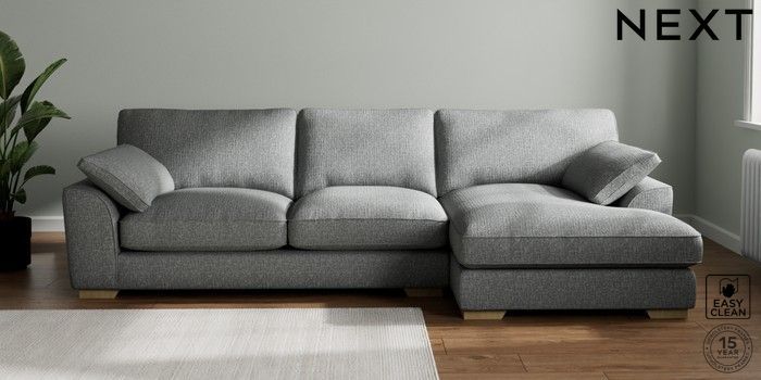 7.3.1 Buy Stamford Grand Relaxed Sit Large Sofa Chaise - Right Hand Chunky Boucle Easy Clean Mid Grey Large Square Angle - Light from the Seasons online shop Click here to use our website with more accessibility support, for example screen readers