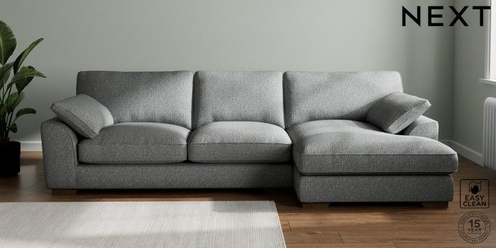 7.3.1 Buy Stamford Grand Relaxed Sit Large Sofa Chaise - Right Hand Chunky Boucle Easy Clean Mid Grey Large Square Angle - Mid from the Seasons online shop Click here to use our website with more accessibility support, for example screen readers