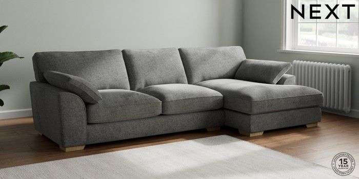 7.3.1 Buy Stamford Grand Relaxed Sit Large Sofa Chaise - Right Hand Chunky Chenille Dark Grey Large Square Angle - Light from the Seasons online shop Click here to use our website with more accessibility support, for example screen readers