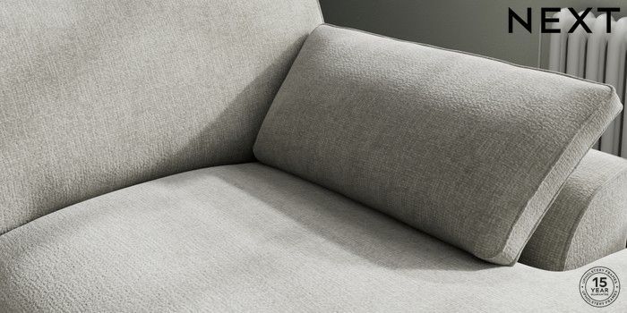7.3.1 Buy Stamford Grand Relaxed Sit Large Sofa Chaise - Right Hand Chunky Chenille Light Grey Large Square Angle - Chrome Metal from the Seasons online shop Click here to use our website with more accessibility support, for example screen readers