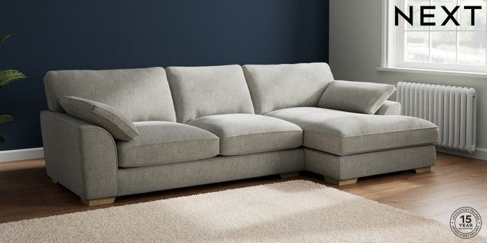 7.2.10 Buy Stamford Grand Relaxed Sit Large Sofa Chaise - Right Hand Chunky Chenille Light Grey Large Square Angle - Light from the Seasons online shop Click here to use our website with more accessibility support, for example screen readers