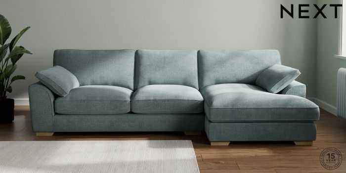 7.3.1 Buy Stamford Grand Relaxed Sit Large Sofa Chaise - Right Hand Chunky Chenille Light Teal Green Large Square Angle - Light from the Seasons online shop Click here to use our website with more accessibility support, for example screen readers