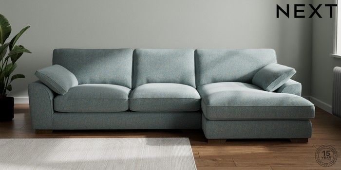 7.3.1 Buy Stamford Grand Relaxed Sit Large Sofa Chaise - Right Hand Chunky Marl Mid Blue Large Square Angle - Mid from the Seasons online shop Click here to use our website with more accessibility support, for example screen readers