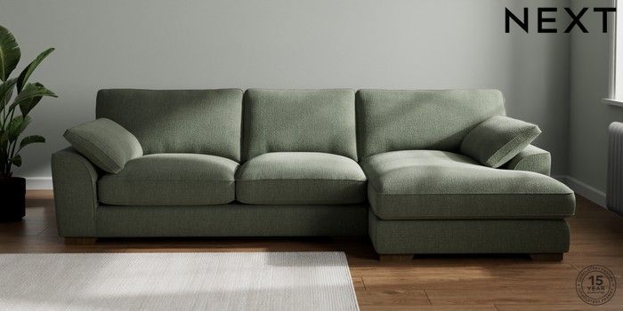 7.3.1 Buy Stamford Grand Relaxed Sit Large Sofa Chaise - Right Hand Chunky Texture Mid Forest Green Large Square Angle - Mid from the Seasons online shop Click here to use our website with more accessibility support, for example screen readers