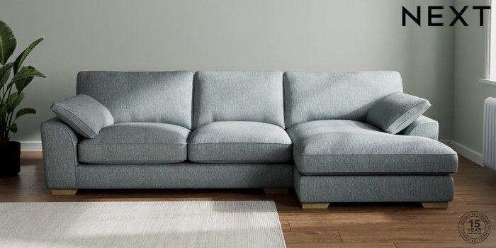 7.3.1 Buy Stamford Grand Relaxed Sit Large Sofa Chaise - Right Hand Chunky Weave Mid Blue Large Square Angle - Light from the Seasons online shop Click here to use our website with more accessibility support, for example screen readers