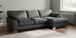 7.3.1 Buy Stamford Grand Relaxed Sit Large Sofa Chaise - Right Hand Cotswold Chenille Dark Grey Large Square Angle - Chrome Metal from the Seasons online shop Click here to use our website with more accessibility support, for example screen readers