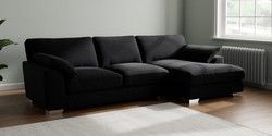 7.3.1 Buy Stamford Grand Relaxed Sit Large Sofa Chaise - Right Hand Fine Chenille Easy Clean Black Large Square Angle - Chrome Metal from the Seasons online shop Click here to use our website with more accessibility support, for example screen readers