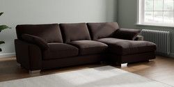 7.3.1 Buy Stamford Grand Relaxed Sit Large Sofa Chaise - Right Hand Fine Chenille Easy Clean Chocolate Brown Large Square Angle - Chrome Metal from the Seasons online shop Click here to use our website with more accessibility support, for example screen readers