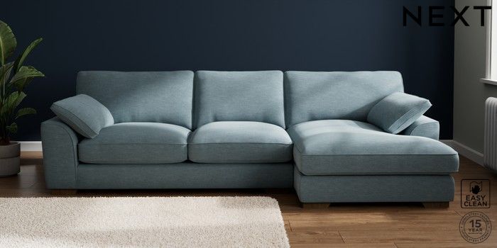 7.3.1 Buy Stamford Grand Relaxed Sit Large Sofa Chaise - Right Hand Fine Chenille Easy Clean Mid Blue Large Square Angle - Mid from the Seasons online shop Click here to use our website with more accessibility support, for example screen readers