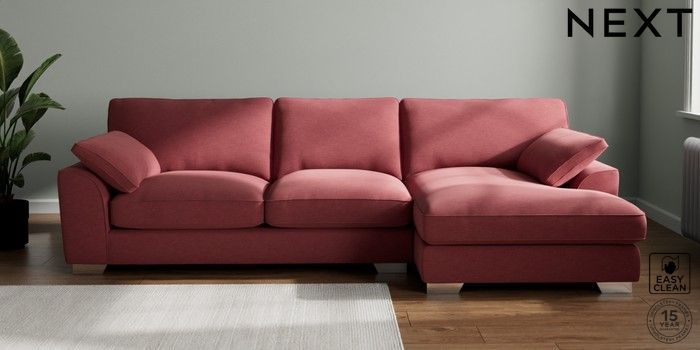 7.3.1 Buy Stamford Grand Relaxed Sit Large Sofa Chaise - Right Hand Fine Chenille Easy Clean Mid Pink Large Square Angle - Chrome Metal from the Seasons online shop Click here to use our website with more accessibility support, for example screen readers